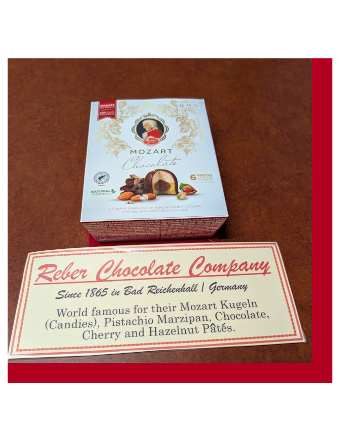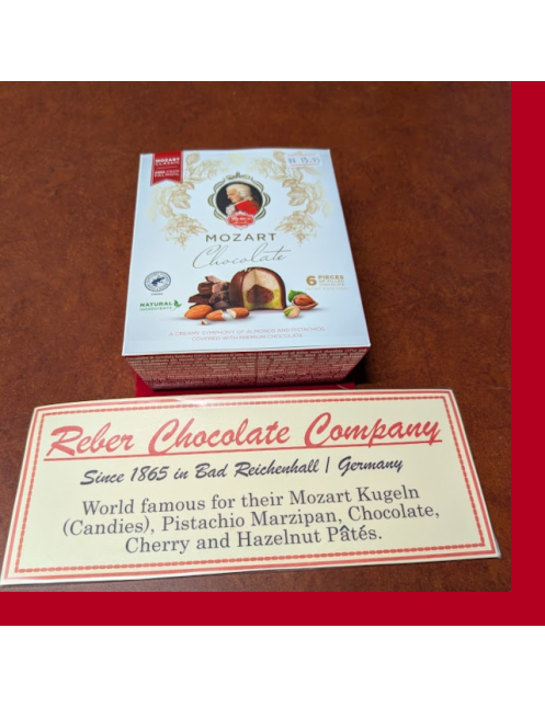 6 pieces of "Mozart Kugeln" , dark chocolate filled with marzipan pistachio marzipan and hazelnut cream. (4.2 oz)