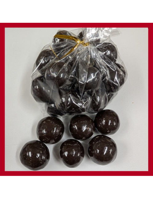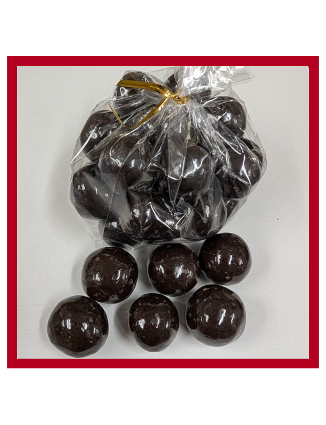 Malt center and tumbled 3 times in awesome dark chocolate. Per bag, 8oz